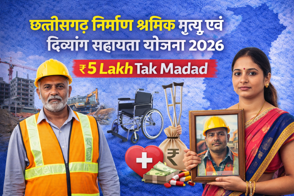 Nirmaan Shramik Mrtyu Evam Divyaang Sahaayata Yojana Chhattisgarh 2026 छत्तीसगढ़ सरकार द्वारा निर्माण श्रमिकों के लिए चलाई जा रही एक